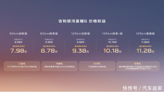 吉利银河星耀6开启预售,国庆先享提车价7.98万元起,多退少不补